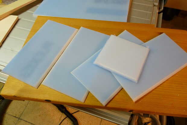 En primer lugar, decidir de qué tamaño deberá ser su caja y recortar las paredes circundantes y la tapa de la hoja de acrílico. Gire la hoja de sierra 45° para lograr el bisel en los bordes, en caso contrario no encaja sin problemas.