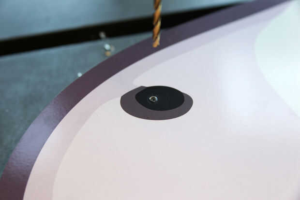 Taladre un orificio de 1/8" en la punta de la nariz que más tarde se utilizarán para el sensor de infrarrojos del control remoto.