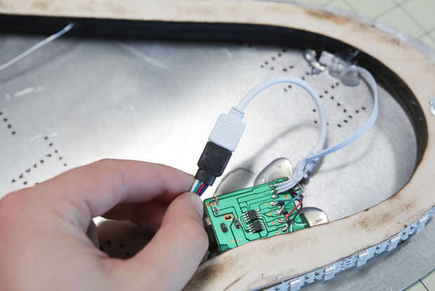 Finalmente, conecte el extremo de la tira de LED en el tablero de regulador.