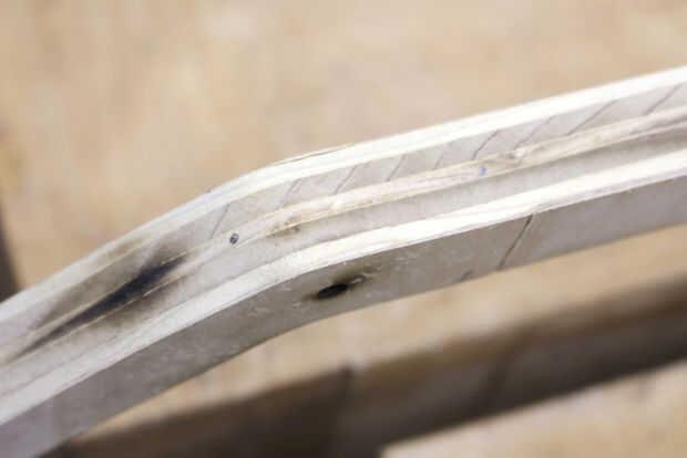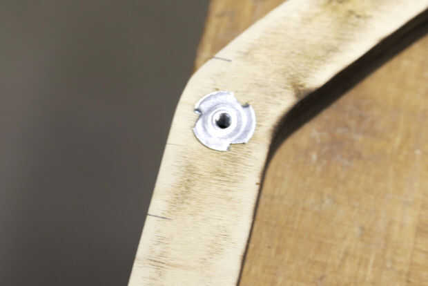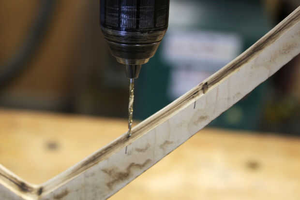 Voltear el marco en el borde y de acuerdo con las marcas, perfore un orificio de 1/8" centrado en el lado del marco.