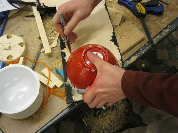 Asegúrese de dejar espacio para los agujeros de 1/2" es perforar más adelante, pero usted necesita cortar un círculo interno.