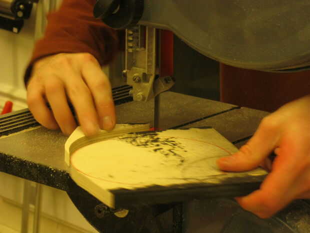 Necesita (quiere) cortar el interior del círculo para que sea una forma de donut. Que aunque corte el borde y sólo se volvió loca con la Sierra de cinta hasta que tuviera el centro cortado. Luego puede pegar el borde nuevo con pegamento para madera o embarcaciones incluso funcionaría bien.