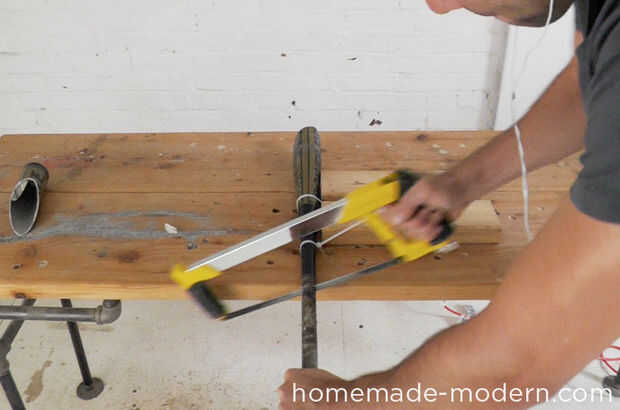 Una sierra reciprocante con una cuchilla de corte de metales va directamente a través de los murciélagos como mantequilla y es genial si quieres un bonito, limpio, recto corte. Quería más de un corte curvado, así que usé mi RYOBI 18 voltios JobPlus™ multi-herramienta con una hoja para cortar. Tardó unos 5-10 minutos para cortar a través el bate, pero pude conseguir las líneas y ver que quería. Puede utilizar una sierra para metales y hacerlo a mano pero tomaría un tiempo. Una vez usted cortar ambos extremos del palo, lo deja con un bonito tubo de metal para servir como la pantalla.