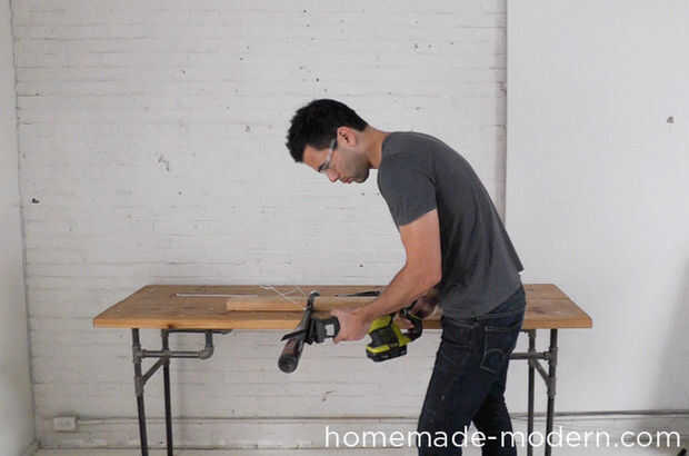 Este proyecto se puede hacer en unas horas fuera de $40 de muebles de madera de grado. La consola entera está hecha de tiras de madera que se apilan y atornilladas. Se trata de una manera fácil de construir un gabinete de los medios de comunicación y