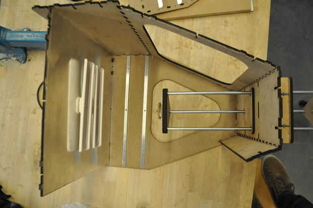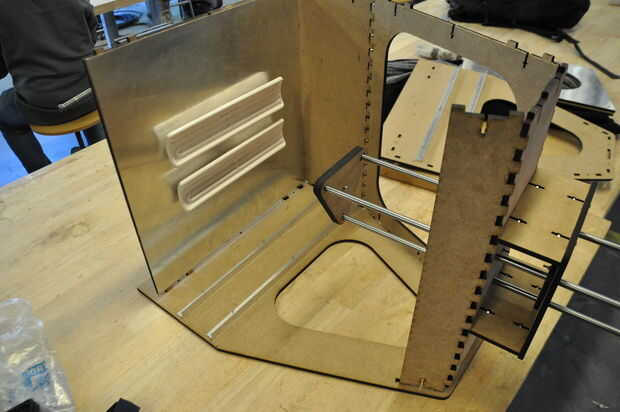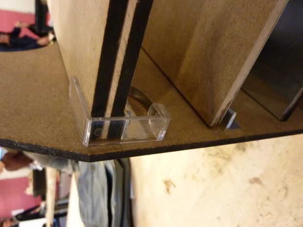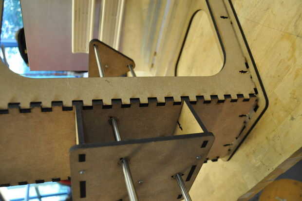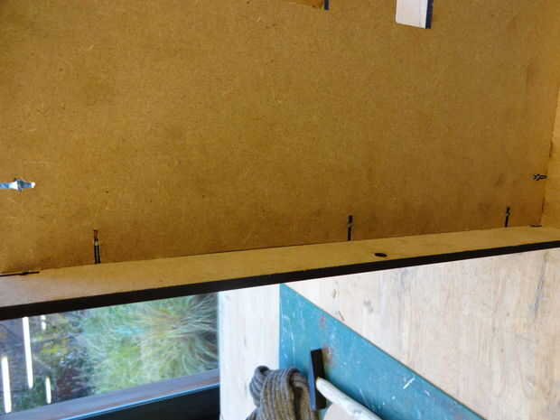 -Perno de la placa del lado segura que las otras planchas. La forma más sencilla de hacerlo es deslizar la construcción por secciones sobre el borde de la mesa para que pueda fácilmente acceso a los orificios de montaje.