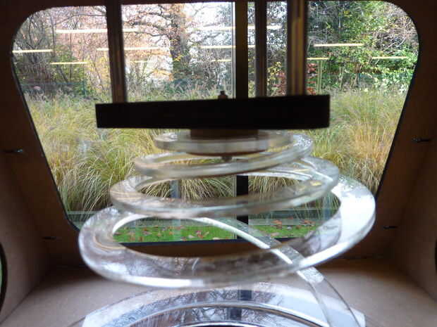 Con estos círculos y un perno largo de M3 (o una varilla roscada M3) puede adjuntar la espiral a los triángulos del mecanismo de desplazamiento como se muestra en las fotos.