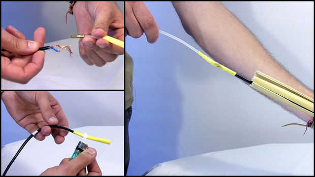 No tengo mucho espacio para tirar el cable, no tire del cable, he cubierto la conexión de la tubería del encogimiento del calor. Que funcionó bien y pude tirar el cable a través de.