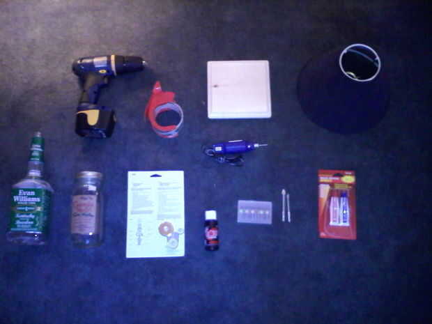 3.) A "Hacer un Kit de la lámpara" (o si usted está inclinado mecánicamente/eléctricamente puede utilizar un zócalo y un cable de alimentación). El "Kit" es bueno porque a menudo incluyen arandelas y tapones de goma que hacen este trabajo perfecto para las botellas.