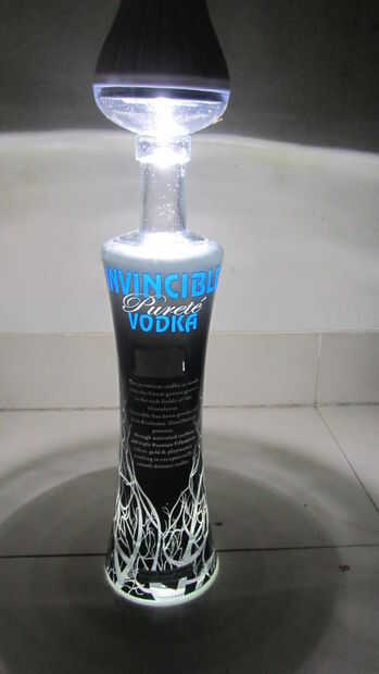 esto es una lámpara de LED poco fresca que es sorprendentemente brillante y se ve fresca en cualquier habitación. El vidrio helado de la botella de vodka hace el efecto que brilla intensamente más liso. Esto es bastante complicado y tendrá mucha paci