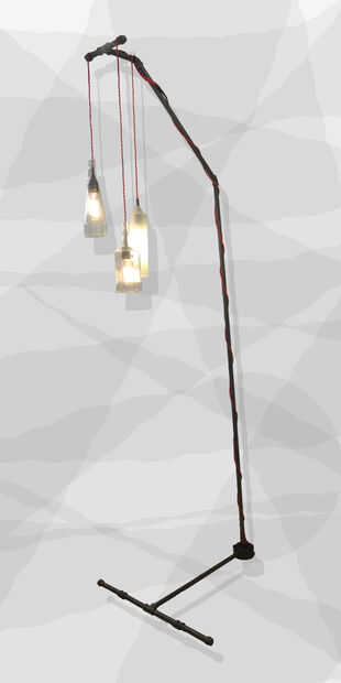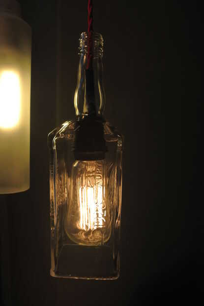 Después hice mi nuez y lámpara de mesa de aluminio, decidí que quería hacer algo más grande. Surgió con un diseño cuando vi una botella de vodka vacía en el reciclaje. En mi diseño original, que quería hacer la base de aluminio redonda de la barra, sin embargo acabé rediseñando la lámpara para que hacerlo fuera de tuberías de hierro fundido. Todavía quisiera hacer este proyecto ya que estaba previsto originalmente, sin embargo no tengo ningún equipo especializado a la curva 3/4 barra de aluminio maciza gruesa.