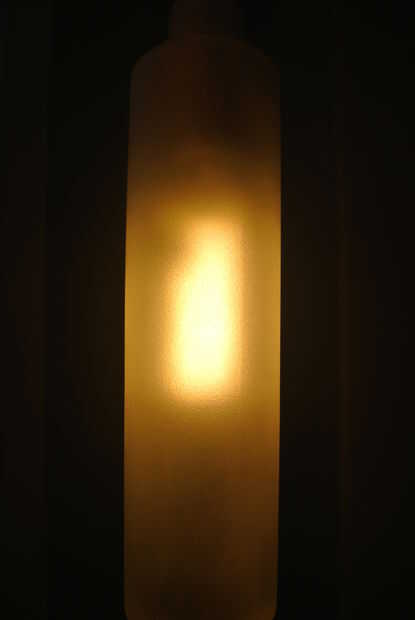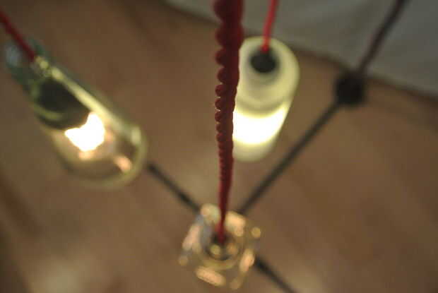 En general, estoy muy contento con el resultado de este proyecto. La lámpara está parado aproximadamente 7'6 "altos, por lo que actualmente reside en la sala de estar porque es demasiado grande para la mayoría de las otras habitaciones de la casa. Originalmente compré las bombillas incandescentes de 60W, pero eran demasiado brillantes así que cambié de 40W. Ahora usted puede ver los brillantes filamentos de las bombillas sin incomodidad, que era la intención original de tener las bombillas decorativas.