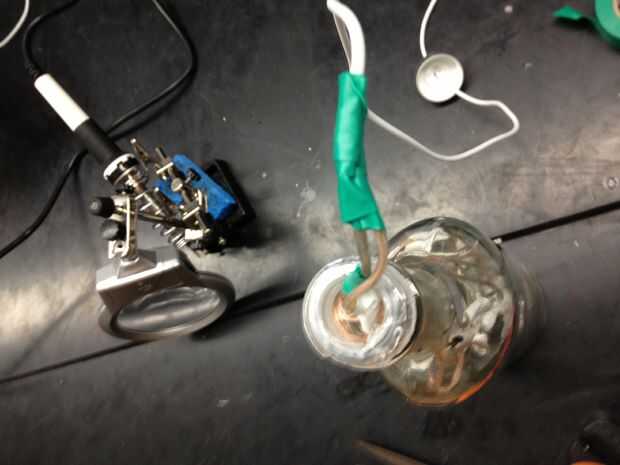 inspirado por el desafío SantiagoDumbledore reciente en la revista Ready Made (www.readymademag.com), hice esta lámpara de botellas de la píldora, los LED y mi viejo limpiaparabrisas. Se puede colgar en la pared o sentarse en el suelo o una mesa.Así