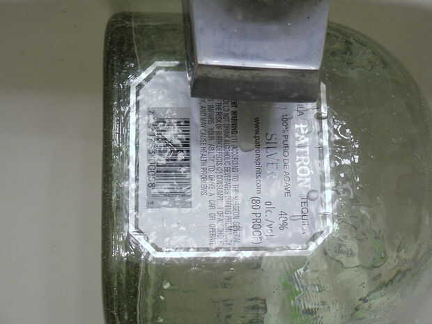 Empezar llenando la botella con agua, perforé el agujero en la botella mientras estaba en el fregadero con el agua que corre sobre la botella para enfriar la broca y reduce el polvo de vidrio también. PRECAUCIÓN CONSIGUE AGUA EN EL DREMEL, PUEDEN SUCEDER COSAS MALAS, POR FAVOR TENGA CUIDADO ***. Utilizando la dremel y la dimond pedacito de la bola hacer el agujero. Después de que el agujero se hace utilizar la broca lija para ensanchar el agujero y suavizar los bordes.