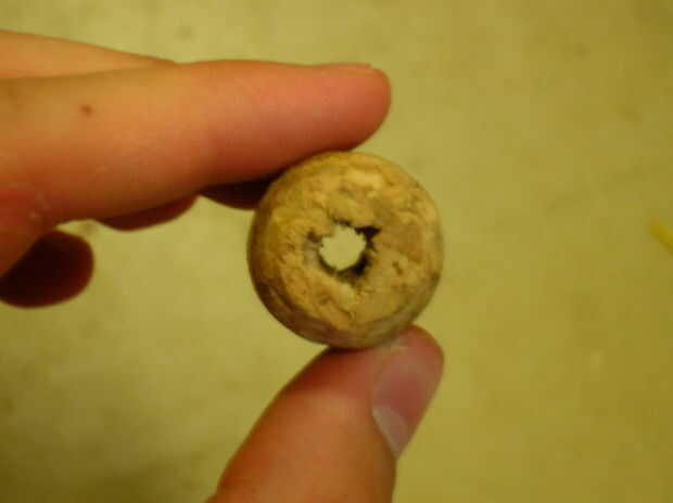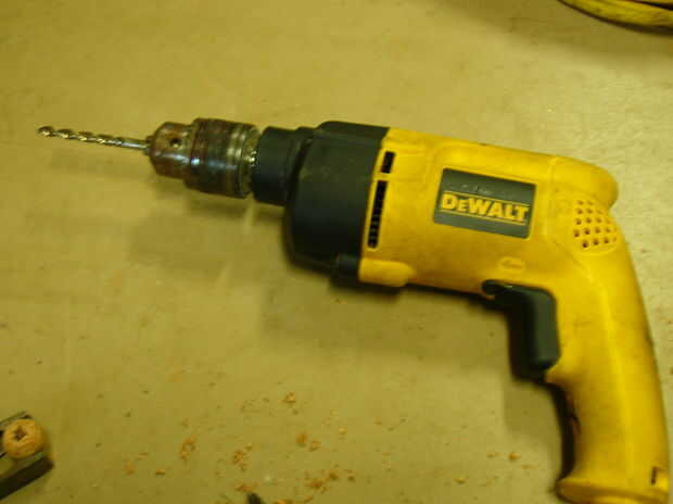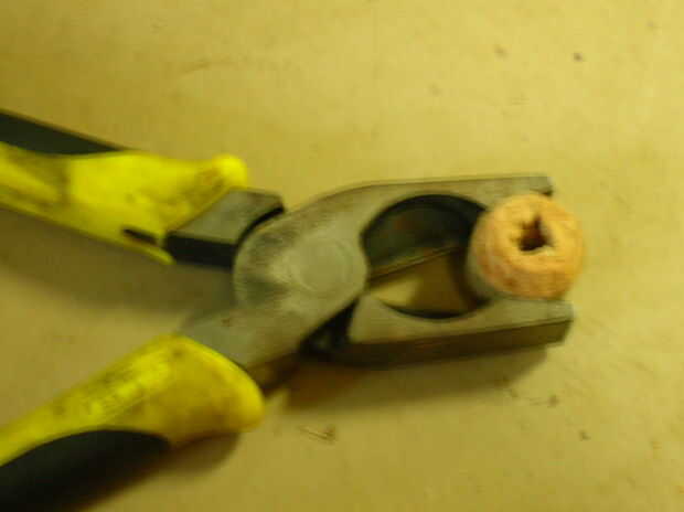 Agarró el corcho con unos alicates y condujo el taladro recto a través del corcho, va hacia adelante y hacia atrás para tenerlo tan liso como sea posible.