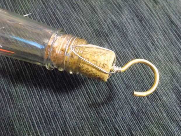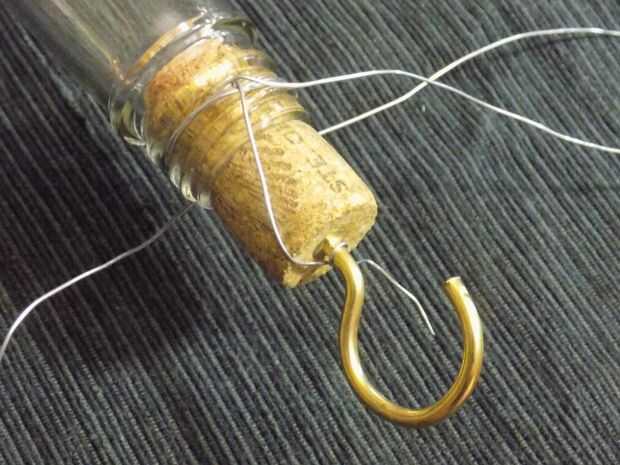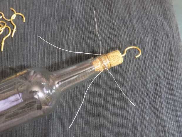 Envolver la primera pieza de alambre alrededor de la boca de la botella y gire una vez. Asegúrese de que el alambre se envuelve firmemente por debajo de un canto para sostener el cable firmemente en su lugar.