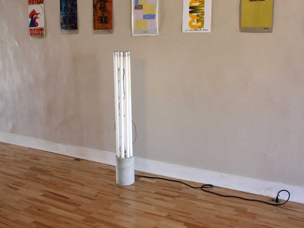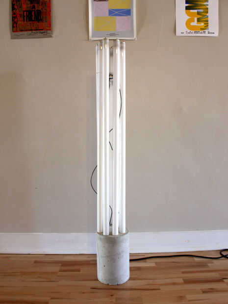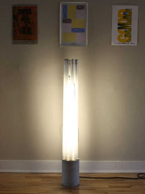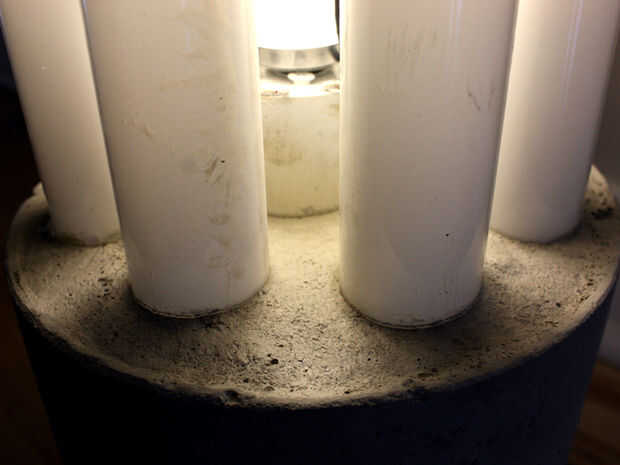 También me di cuenta de una serie de deficiencias sobre la terminación; es decir, los tubos siendo enterrados permanentemente en concreto hace difícil reemplazar un foco roto o para mover la lámpara sin amenazar los tubos. Tal vez, la siguiente iteración, se tienen zócalos que facilitan el intercambio de los tubos para el transporte o reparación. En el proceso de fabricación de la lámpara, se rompió un tubo; He incluido instrucciones de reemplazo aquí.