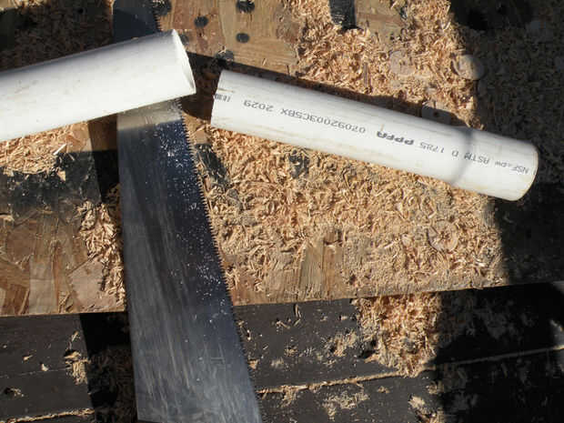 Corte el tubo de PVC y la sonotube a 12" de largo. Lijar y alisar el borde cortado de la tubería.