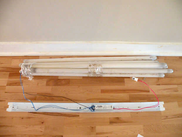 Empezar por quitar el accesorio de su carcasa metálica, por lo que es sólo un lastre con dos zócalos cableados a él.