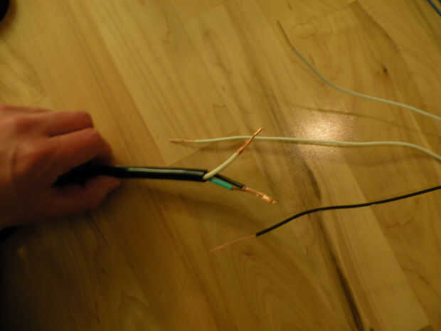 A continuación, tome el cable de alimentación (debe ser un cable a tierra de tres clavijas) y alambre los dos de alimentación cables, blanco y negro, a los cables de corriente procedente de la reactancia. Accesorios fluorescentes deben conectarse a tierra para trabajar; por lo general, en la instalación por cable, el cable de tierra es conectado a la carcasa de la bombilla de metal. En este caso, ya hemos descartado la vivienda, el suelo puede sólo conectarse directamente a la reactancia sí mismo. Acumular la tierra verde del cable de alimentación y conecte a uno de los agujeros en el balastro.