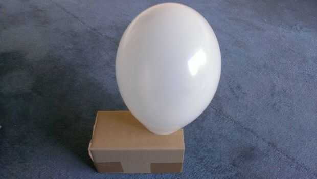 Saltar el balón y, con algún cartón, construir un soporte para él, para que el globo puede estar parado para arriba recto y es fácil trabajar con. Construyó una caja de cartón, cortar una cuña, aprieta el extremo del balón en la cuña y había asegurado el globo con cinta de enmascarar.