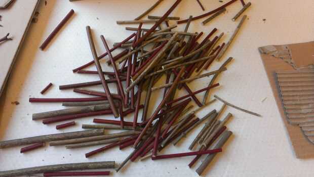 Antes que nada necesitarás algunos palos que componen el mundo. He utilizado ramas de arbustos de diverso colores dos con diámetros de alrededor de 2 a 8 milímetros.
