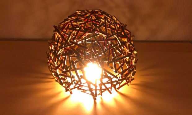 Coloque una fuente de luz (usa una bombilla de baja potencia) en el centro de la esfera y luz para arriba.