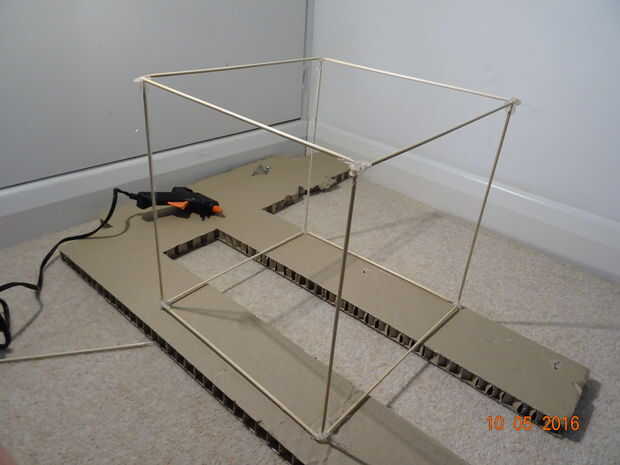 Primero quiere conseguir 4 palillos de bambú y colocar en una plaza y calentar tu pistola de pegamento caliente y pegamento caliente juntos. Entonces que otra vara de bambú para recoger de la cartulina. Ahora han conseguido su plaza. tienes que hacer 2 de estos. Una vez que tienes dos usted puede caliente pegamento los otros cuatro hacia arriba. Finalmente caliente pegamento la Plaza otros dos la parte superior de los cuatro palos que son hacia arriba.
