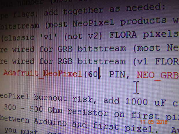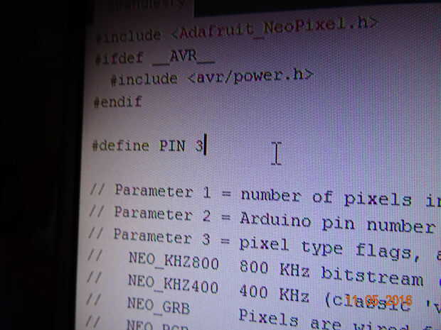 Así que primero desea cambiar el número de leds de 8 (si no sabes donde cualquiera del código es mirar las fotos)