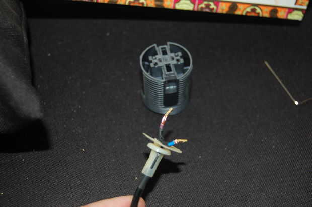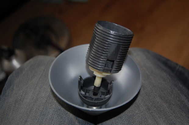 Una lámpara moderna nada es sencillo desmontar cosas como la mayoría son ayuda junto con clips ocultos y muelles que facilitan la fabricación y no están diseñados para tomarse aparte. Habría supuse que sería la forma más fácil de quitar el cable del tubo del metal desmontar el interruptor y retire el cable, pero no había tornillos en el interruptor y tener un poco intentar Premio abierto con un destornillador pensé que sería quitar el portalámparas en su lugar. El sostenedor de la lámpara se encuentra en un 'bowl' de plástico que había sido pegado a él, para que esto solo necesita un poco de persuasión alicates para separar los dos. La parte principal del sostenedor de la lámpara viene en dos partes que son ayuda junto con clips de plástico. Puede poner un destornillador fino en la parte superior de los clips y repartirlos al obligar a las dos piezas separadas. Entonces vemos que los cables se llevan a cabo al titular por un par de resortes de metal que permita que los cables y trábela en su lugar cuando tiraron del titular. Pude ver un par de pequeños agujeros adyacentes a estas termas tan apareció una pequeña llave allen en el hoyo que mueve los resortes un poco y después de un poco de empujar, tirar y que molesto sacaron los cables. Creo que sale con diciendo que usted debe hacer esto cuando la lámpara no está enchufada!!!!