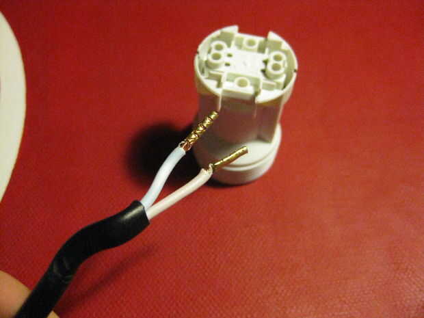 Ahora con cuidado tire de los cables en el portalámparas, como se muestra en la segunda foto.