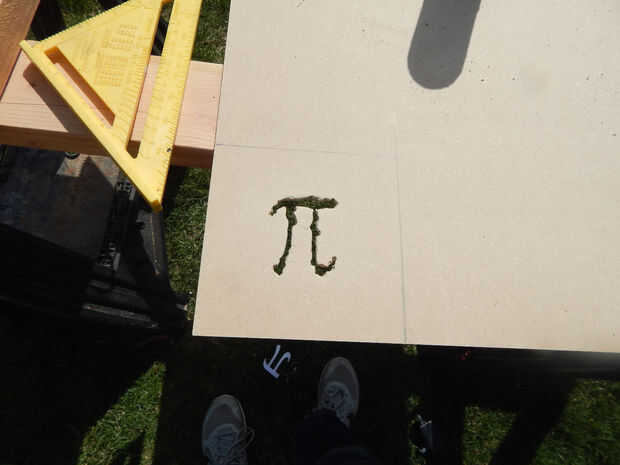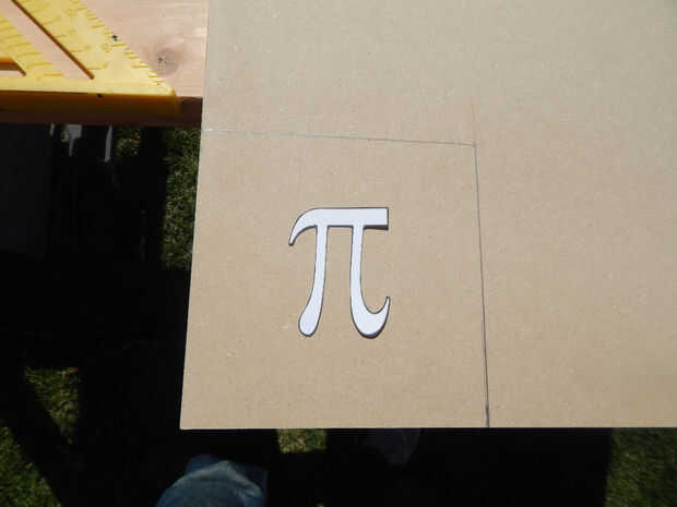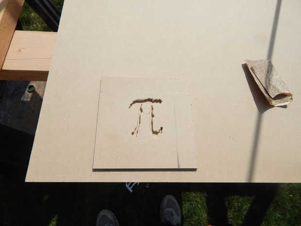 b) ahora utilizar la plantilla de Pi para trazar el símbolo a la madera. Aquí viene la parte difícil, usted necesita cortar la madera. Usaba un router y una Dremel pero hay todo tipo de herramientas que pueden utilizarse para hacer esto.