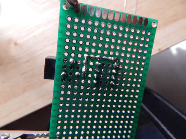 c) siguiente utilizas rastro de soldadura para conectar el terminal positivo de la toma de barril (en la foto 4 es el más lejano a la derecha) en el lado positivo de la toma/attiny.