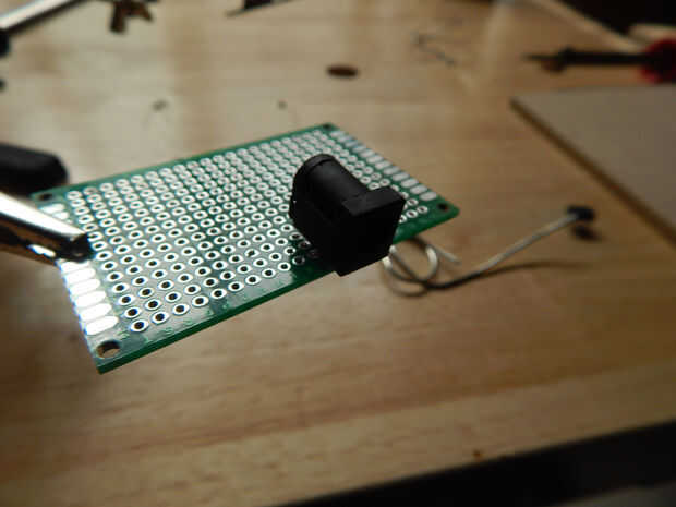 El primer paso es obtener a su toma de barril c.c. e insertar en el centro de la Junta de perf como se muestra en la figura 1. Luego la soldadura.