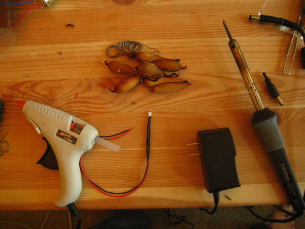 b) LED. Compré 20 3 mm cálido blanco LED que tienen resistencias conectadas por $5.00 en eBay. Usted probablemente querrá que son calientes en vez de blanco brillante.