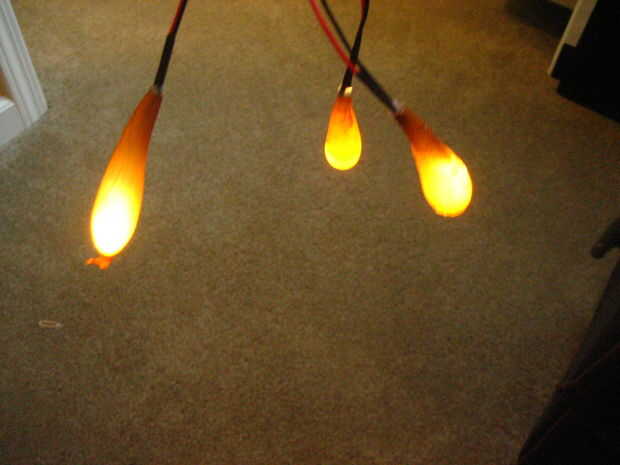 Dependiendo de lo que tiene alrededor de su casa, se puede utilizar alambre y cinta aislante negra para hacer soportes cada vaina. Para el pulimento final, uso y los cables negros que los extremos rojo apenas son visibles (necesitarás conectar varias juntas) la pintura de aerosol negra alambre floral. Otros enfoques pueden ser también igualmente bellas.