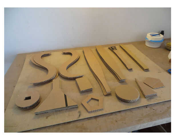 Los materiales para esta lámpara son: envases de cartón de un canal, cutter, pegamento, pegamento caliente, papel kraft adhesivo... y poco más.