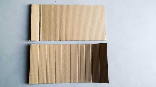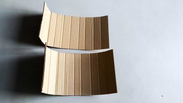 Hice esta pantalla con estas medidas: recortar 2 pedazos de cartón, cada 25 cm x 50 cm grande. He hojeado las piezas que los lados de texto se enfrentan a la tierra. Que doblan verticalmente cada 5 cm.