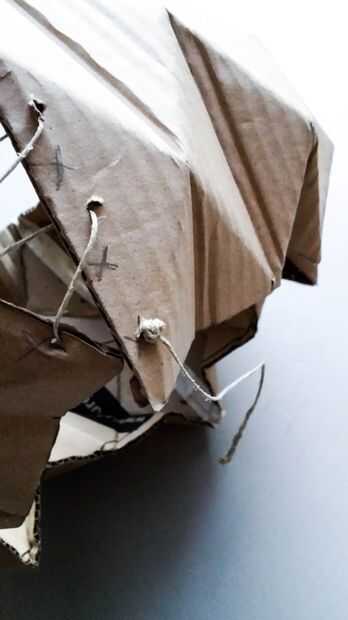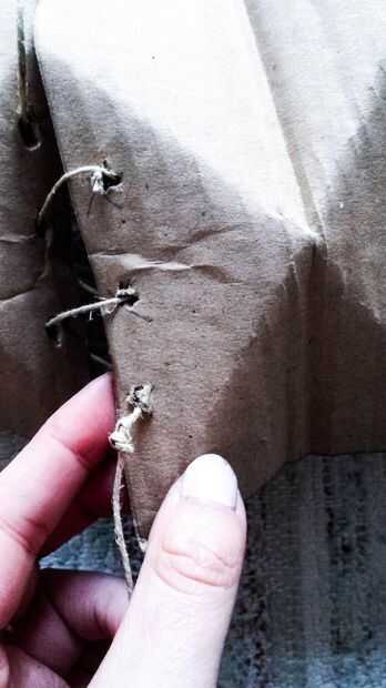 Es un trabajo fácil con unas tijeras y la cuerda: sólo hacer unos agujeros y hacer un fuerte nudo en los extremos. Hacerlo en ambos lados, por lo que crear un tazón de fuente.