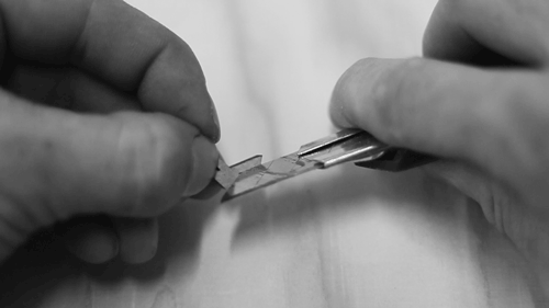 Idealmente deberás acabar con todas las partes no limpiar ningún trabajo adicional requerido. Pero como las piezas de la abrazadera pequeña tienen una abertura de 0,5 mm hay generalmente algunas cenizas o una pequeña astilla de MDF dejado atrapado allí. Me pareció más fácil de limpiar con la parte posterior de un cuchillo.