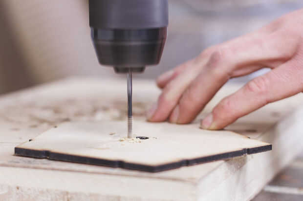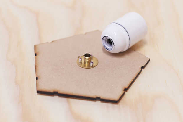 Taladrar los agujeros en la posición particular y me clava la guarnición allí. Como perforado dos agujeros de unos 2 cm desde el centro de uno (donde el cable entra a través de) un cintillo que se presione el cable hasta el fondo. Encontré que un alambre más grueso de la tela levanta la lámpara y previene de pie sobre sus pies, por lo que añadiendo el cintillo realmente ayuda.