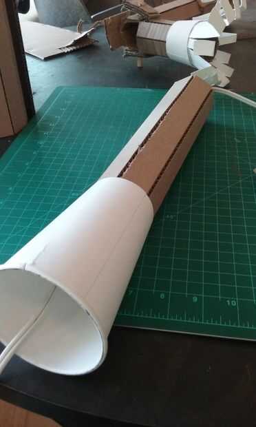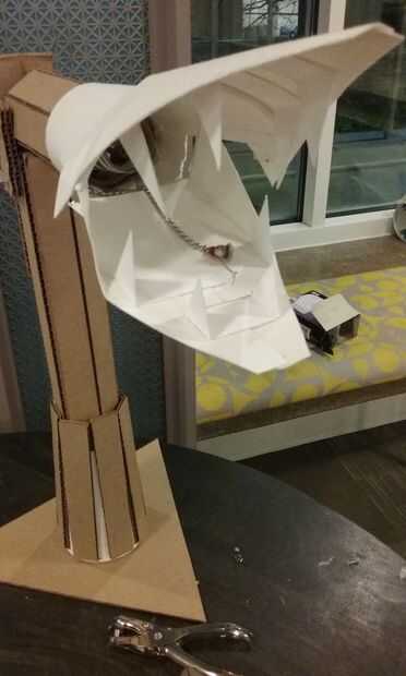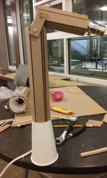 Líneas de corte en el fondo de una taza de papel y coloque la parte inferior de la estructura del pie en la parte inferior de la taza de papel que se corta antes. Cortar otra taza de papel por la mitad, rellenar con piedras para el peso en la parte inferior y pegarlo debajo de la estructura del pie. Y la parte inferior de toda la nueva permanente estructura de un base de cartón más grande.