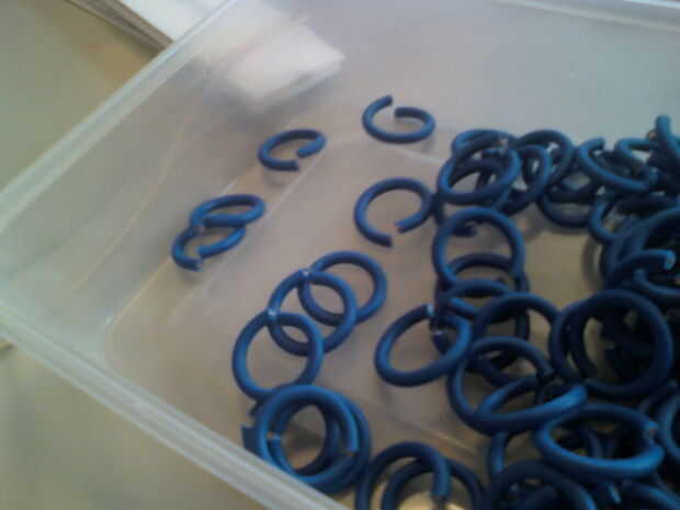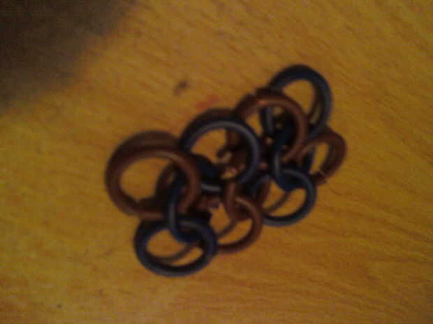 Oppen 1 de los anillos y 4 cerca de los otros, luego poner los 4 aros en el 1 abierto cerrados y ciérrelo.