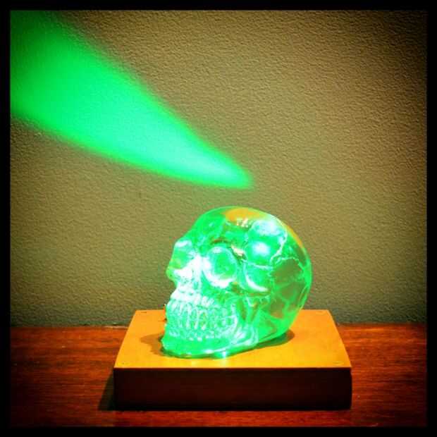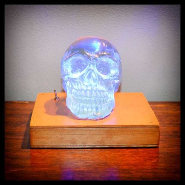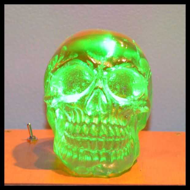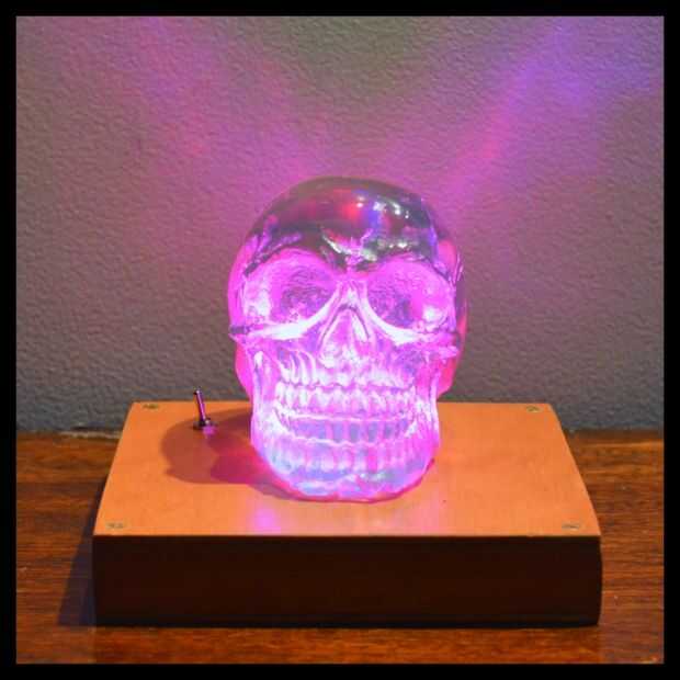Pruebe el control remoto que viene con el mundo del LED. Usted debe ser capaz de cambiar el color de las luces. Si no, lo separe y compruebe su soldadura. Ahora añadir el cráneo, enciende el LED, sentarse, un reloj la magia sucede.