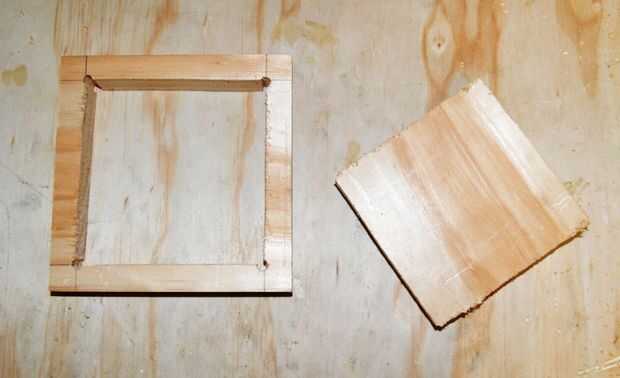 4. para la parte superior e inferior del soporte luz usé algunas capas finas de madera. Cortar 2 trozos que quepan en cada extremo de la pieza cuadrada de madera.