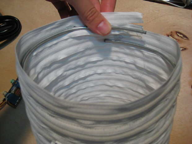 Con el alambre de acero, doble una armadura de espiral para crear lo que parece una lavadora gigante partido. Esto debe encajar perfectamente en el interior diámetro del tubo cremallera.