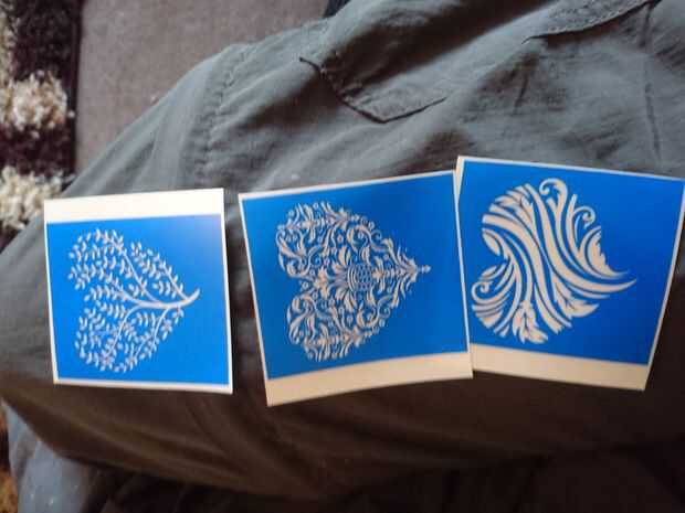 Hay una segunda capa de película transparente en la parte delantera que tienes que separar la plantilla azul raspando sobre la superficie. Para esto utilicé un palillo del lollipop como sucedió con las plantillas.