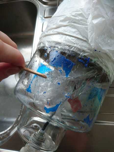 Asegúrese de lavarlo cada parte del vidrio y luego raspar los restos de las plantillas azul (sin rayar el cristal)