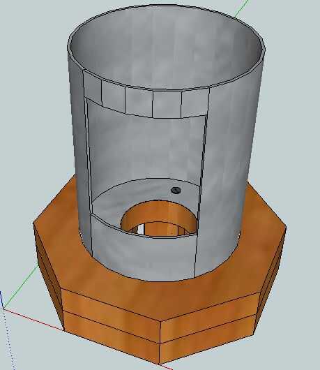 Tomar el poder y darle la vuelta boca abajo por lo que depende de la parte inferior. Vas a cortar un cuadrado que a través de la toma. [La primera vez que hice esto y en el modelo de SketchUp es un círculo. Me di cuenta de que una plaza es mejor porque es mucho más fácil de cortar y no hay ninguna ventaja en tener un círculo.]