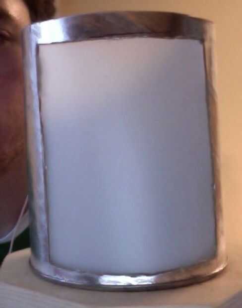 Si usas un globo blanco *, cortar un trozo de plástico (como de una botella de refresco) de la misma forma que el difusor y cortar un balón y estirar sobre el plástico. Pegue en el lugar y luego lo pegue en la lata. Luego pegar otra pieza de plástico sobre el globo. Esta segunda pieza evitará los tacos cogida en el globo de goma. Recuerde: las capas deben ser plástico, globo, plástico.