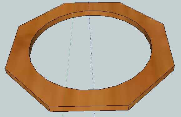Vas a hacer una forma como en la primera foto con un perímetro de un octágono y un borde interno como un círculo. El círculo debe ser el diámetro de la pared clavija y un poquito por lo que puede dar vuelta la pared y el octágono debe ser del mismo tamaño que la base.